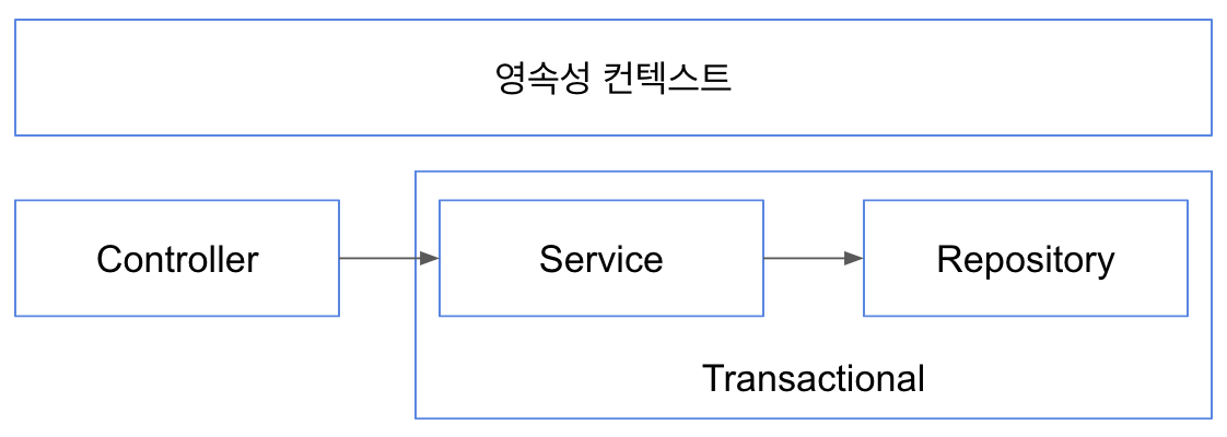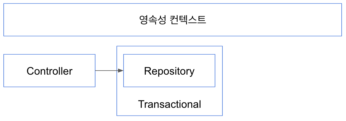 해결: 데이터 변경은 서비스 계층으로 위임해서 트랜잭션 안에서 처리한다. (서비스 계층은 @Transactional 을 직접 설정해주어야 한다.)