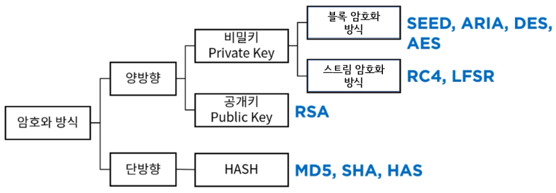 복호화가 가능한지에 따라 양방향 / 단방향으로 구분되고,